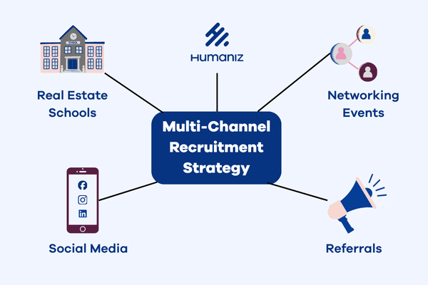 Don’t underestimate networking events and industry meetups. These gatherings are perfect for making connections and sharing your brokerage’s vision. Also check job boards, real estate schools, and licensing programs to find fresh talent ready to jump into the field.